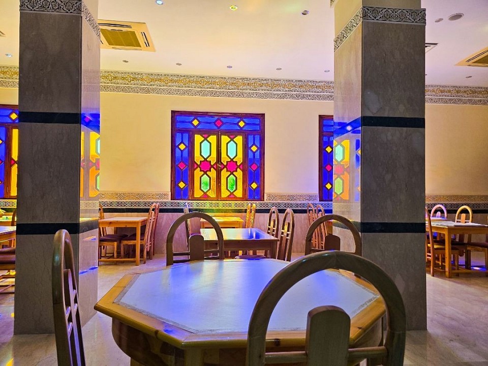 Restaurant Principal : L'hôtel dispose d'un restaurant qui sert le déjeuner et le dîner, proposant probablement des plats locaux marocains ainsi que des options internationales. Petit-Déjeuner Continental : Un petit-déjeuner continental est servi pour bien commencer la journée. Des options de petit-déjeuner en chambre ou à emporter sont également disponibles.